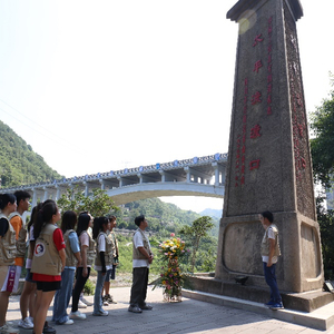 当日上午,团队来到了太平渡渡口纪念碑。首先由学生代表向纪念碑进献花篮,并在指导老师朱磊的讲解下带领团队重温四渡赤水故事并学习长征精神。朱磊老师介绍到,四渡赤水战役是遵义会议之后,中央红军在长征途中,处于国民党几十万重兵围追堵截的艰险条件下,进行的一次决定性运动战战役。中央红军采取高度机动的运动战方针,纵横驰骋于川黔滇边境广大地区,积极寻找战机,有效地调动和歼灭敌人,彻底粉碎了蒋介石企图围歼红军于川黔滇边境的狂妄计划,红军取得了战略转移中具有决定意义的胜利。学生们肃然起敬,认真聆听,并将四渡赤水精神牢记于心。