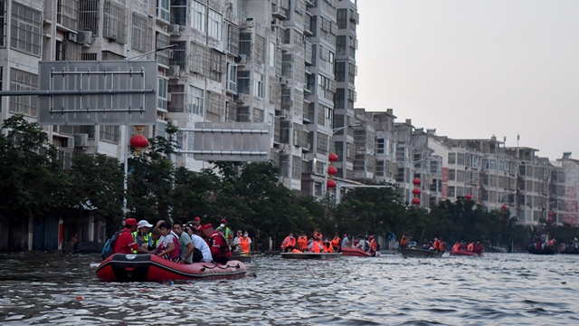 民间救援在河南:自带干粮水泵橡皮艇,逆行者往洪水深处
