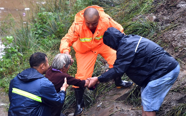 老人、孩子,在雨中伸长脖子张望。这天,救援队一直忙到晚上11点才开始休息。陆续营救转移了100多人。