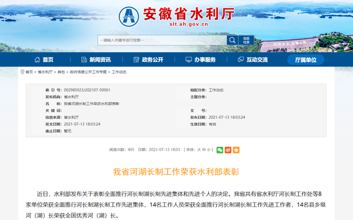安徽省水利厅河长制工作处