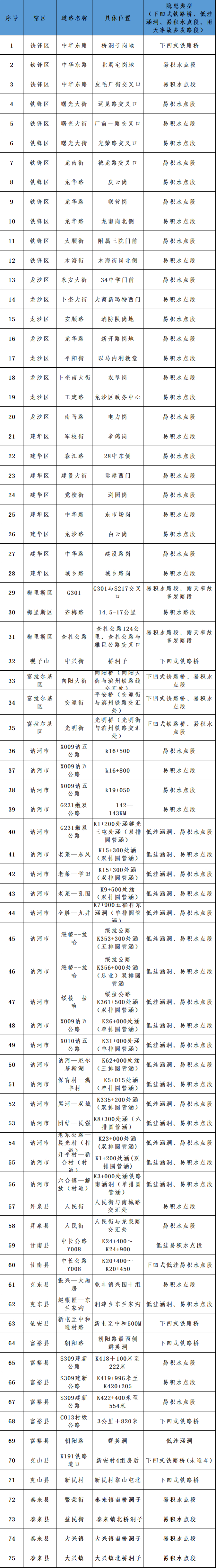黑龙江省易积水路段最全发布!收藏,转发~