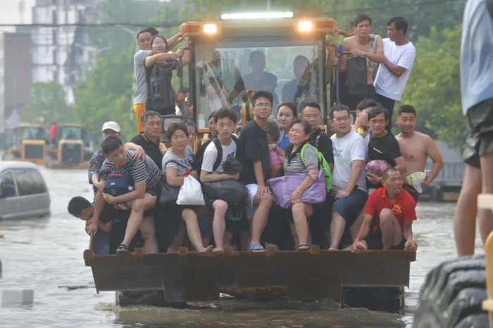 积水中,铲车变身“生命之舟”