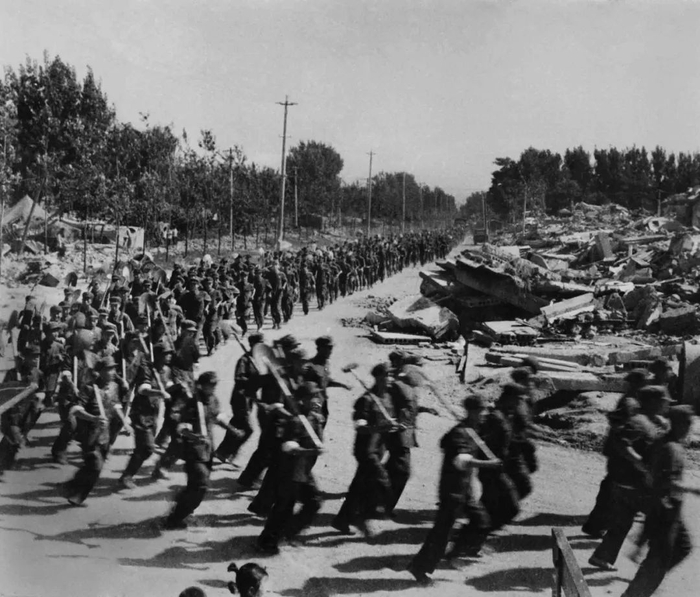 △解放军跑步进灾区