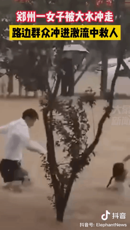 一女子即将被大水冲走