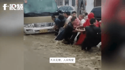 一辆坐满小学生的客车深陷急流中