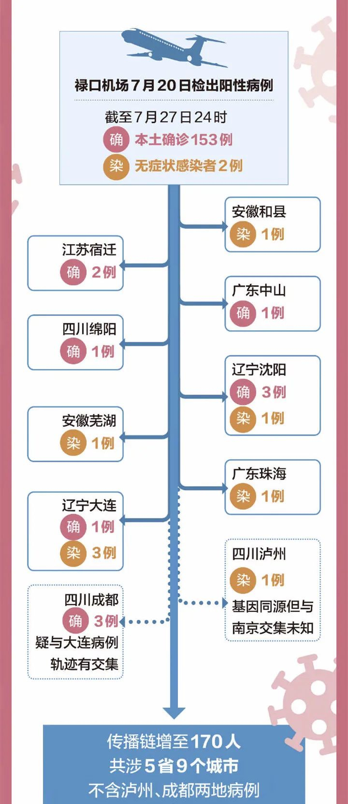 此前,根据国家卫健委和南京卫健委数据,7月27日0—24时,全国新增本土病例55例,包括江苏48例,四川3例,辽宁2例,云南2例。