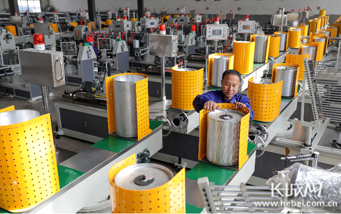 阜城县天晟纸管机械有限公司机械组装车间工人正在调试设备。