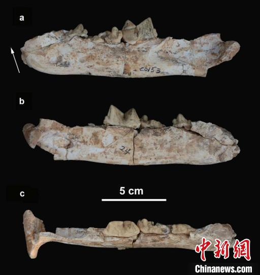 论文通讯作者、中科院古脊椎所助理研究员孙博阳介绍说,临夏盆地剑齿虎属化石新材料发现于甘肃省广河县,是一段带有颊齿的下颌水平支部分,具有明显的原始特征,包括相对较垂直的下颌联合部侧面轮廓、尺寸相对较大的下前臼齿、下裂齿具有较发育的下跟座残留,与分布在欧洲的隐匿剑齿虎一致。