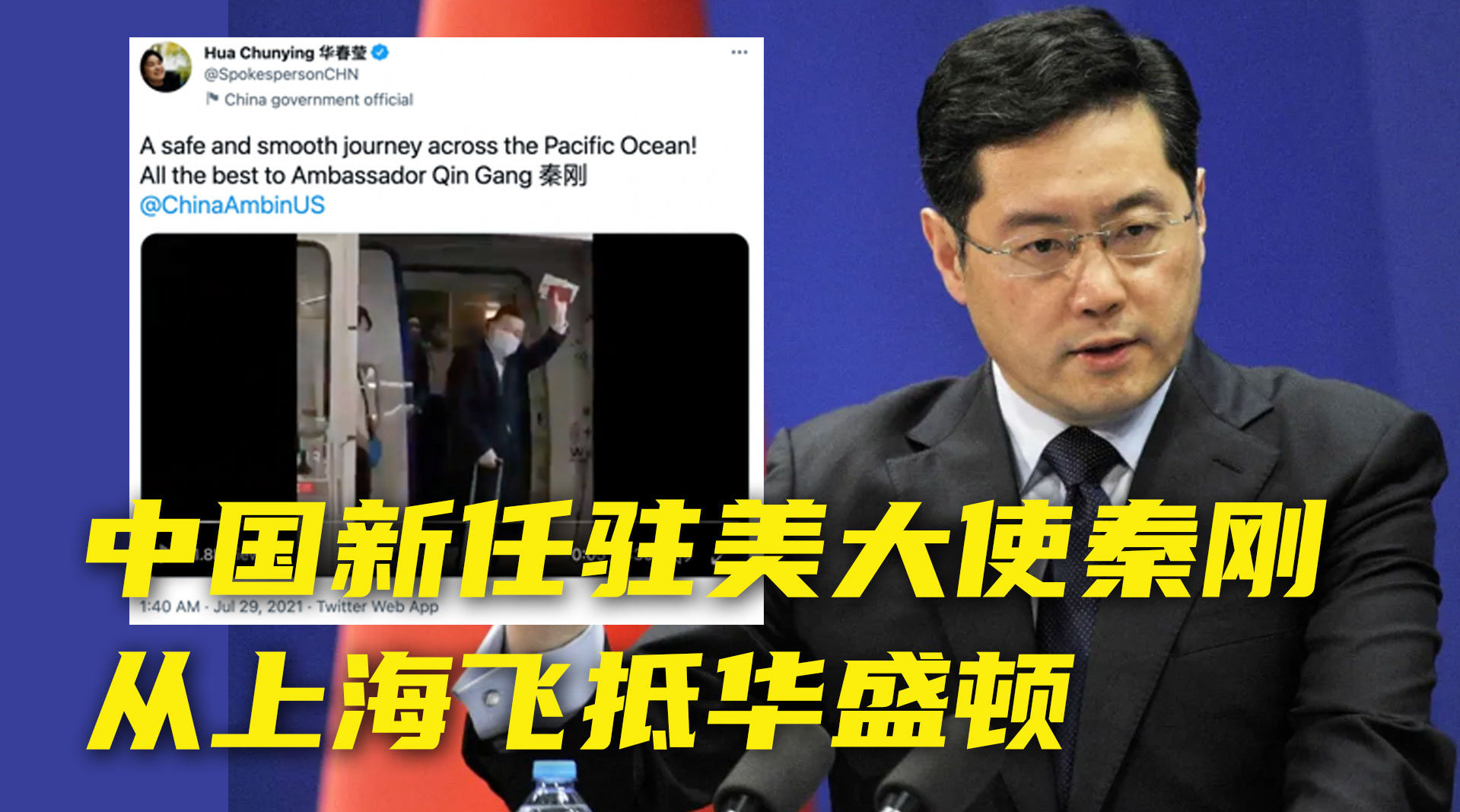 中国新任驻美大使秦刚,从上海飞抵纽约