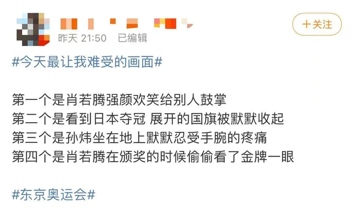 意难平!多位奥运名将“喊话”肖若腾……
