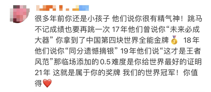 网友:在我们心里你就是冠军!