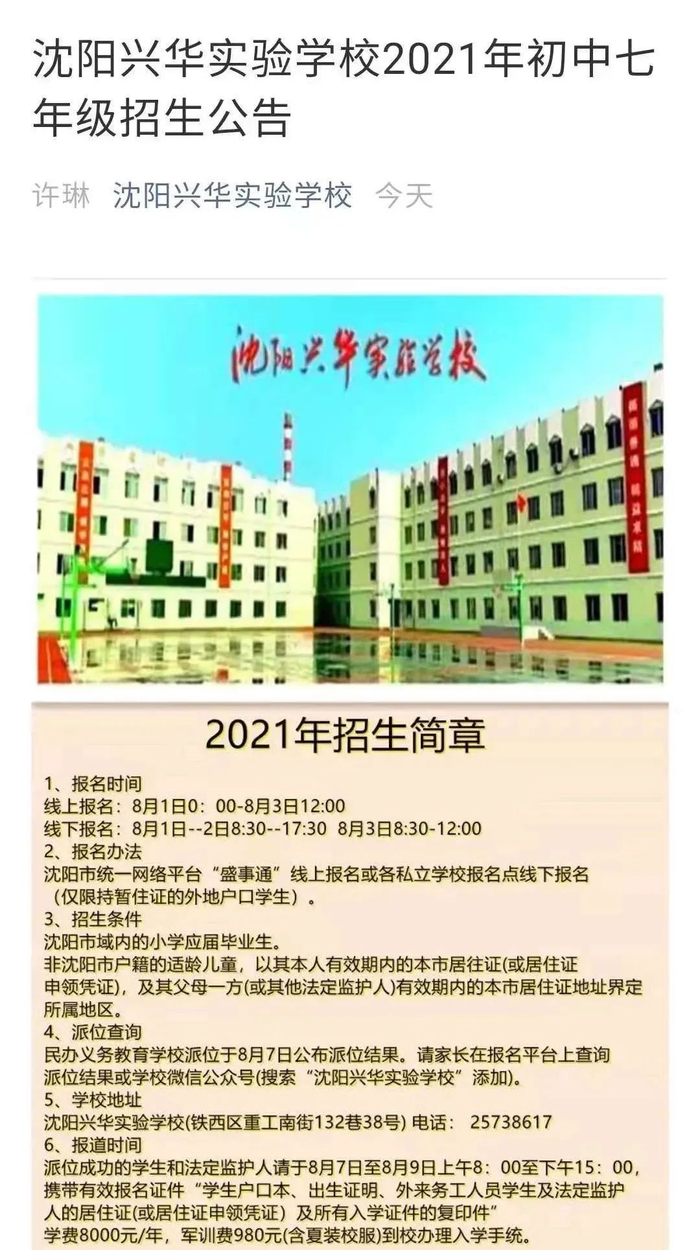 备受关注的沈阳育才、雨田、兴华实验等多所学校,在本校的公众号等处分别发布今年招生方案。