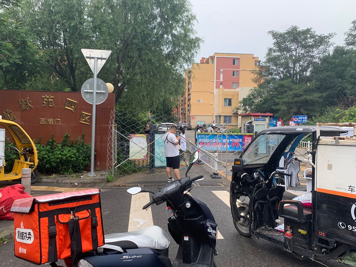 与龙跃苑四区一路之隔的龙腾苑四区也封闭了,门口一张告示声明:“龙腾苑四区大门已封,只进不出,开证明请到居委会。”小区东南门铁皮围挡外,一位不了解情况的快递师傅想把客户订购的电脑送货到家。“各个门都不让进了。”保安向快递师傅解释。记者来到周边的北回归线、龙跃苑一区等社区,情况与之类似。
