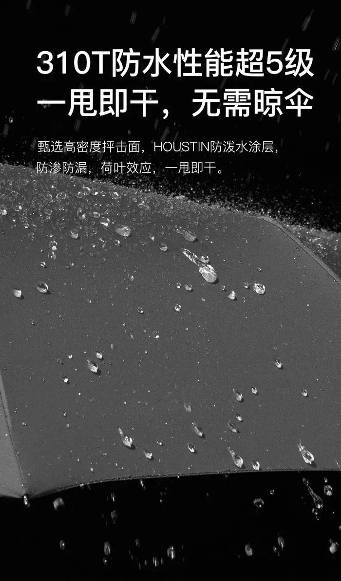 防水性能:310T防水性能超5级,一甩即干,无需晾晒