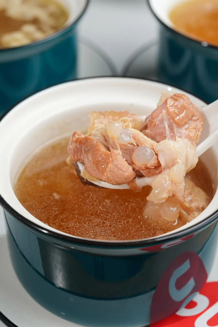 一盅清亮鲜美、口感丰富的炖排骨汤,除了新鲜的排骨还有红枣和雪梨的味道提供,清甜美味,一啖入魂~