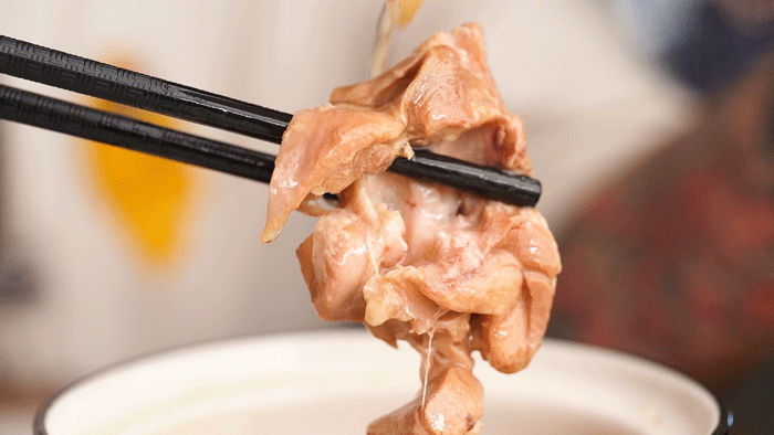 起一块凤爪,酱汁咸香适口!凤爪软软糯糯,卤到骨都有味,轻轻吮一下肉就下来了,好好味!