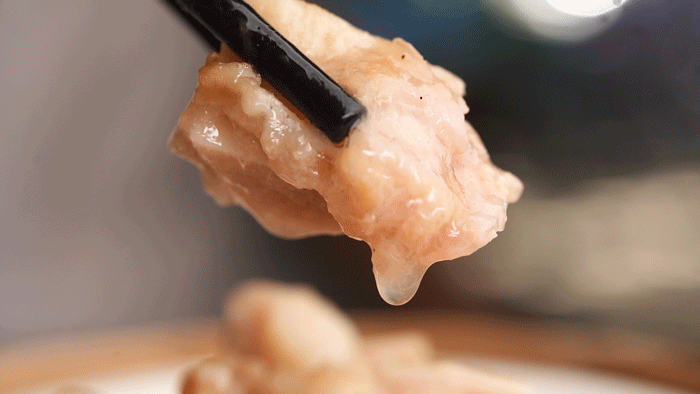 水晶虾饺皇,白里透红,新鲜出炉,皮薄馅多,咬上一口,个大新鲜的虾仁清晰可见,入口Q弹饱满,虾肉紧致鲜甜 ~