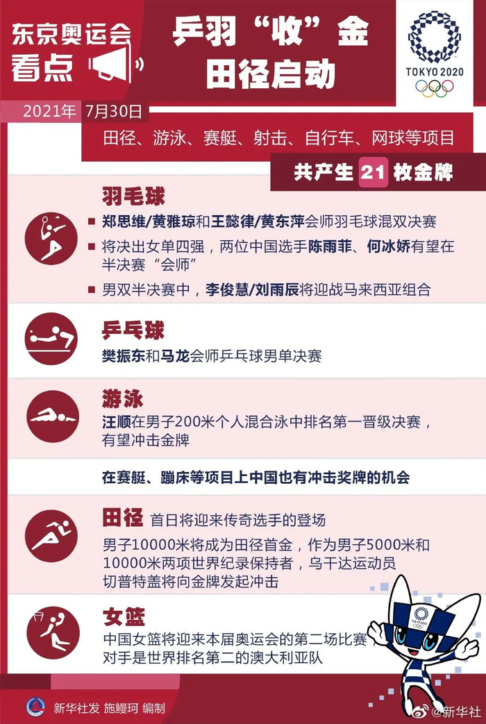 7月30日,东京奥运会将决出21枚金牌。田径比赛首日将迎来传奇选手登场,男子10000米成田径首金。