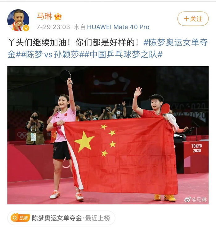 15金!陈梦赢了!马琳哭了!表哥黄晓明发博