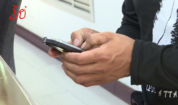 丁某拿着手机,