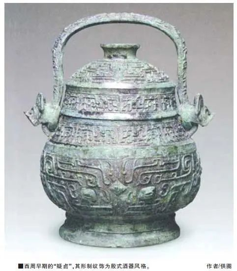 殷王朝酒器种类丰富,成为殷文明的主要特征之一。西周王朝建立后,在其早期沿用殷代政治、礼仪制度,同时怀柔、任用臣服周王朝的殷遗贵族,全盘接受与继承殷文化,全套殷式酒器因此得以保留使用,无论是殷遗贵族,还是以姬姓为核心的周人贵族,都继续铸造使用酒器。这就是所谓“周承殷制”。西周中期以后,特别是穆王以后,在礼制变革的大环境下,殷式酒器基本式微,包括上述的觚、爵、角、斝、尊、卣、觯、彝、觥等器,均废止不用,唯一保留的酒器就是可以长期储酒的壶,可见西周中晚期形成的礼乐文明,与殷文明有很大不同,即大大减少了燕飨祭祀等礼仪场合中,酒器的使用。西周早期继承殷制,与穆王之后的礼制变革,均说明殷式酒器流行与使用的年代下限,在西周穆王之世。我们明白了这一点,就掌握了一个判断金文时代的工具,即殷式酒器上的铭文,一般不会晚到西周穆王以后。