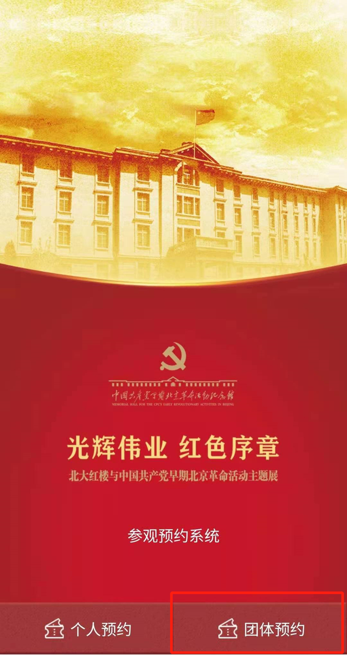 进入预约页面,点击【团体预约】;