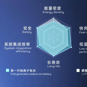 表现的数据上,其第一代电芯单体能量密度已经达到了160Wh/kg,下一代钠离子电池能量密度将突破200Wh/kg。