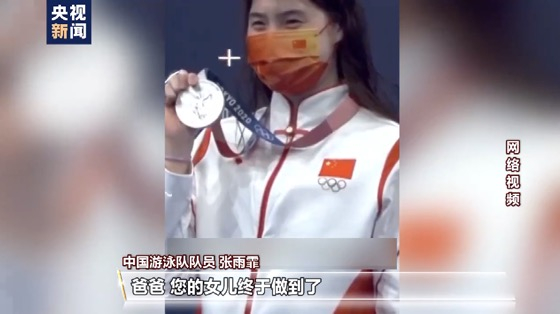 中国游泳队队员 张雨霏:我爸爸在我四岁的时候就去世了。爸爸这个词,我可能都有十三年没叫过了。我想对我的父亲说,爸爸,您的女儿终于做到了。