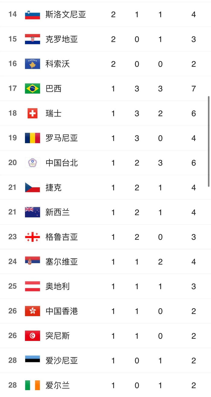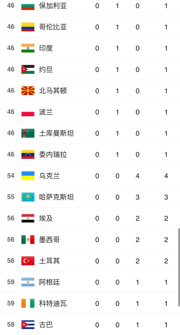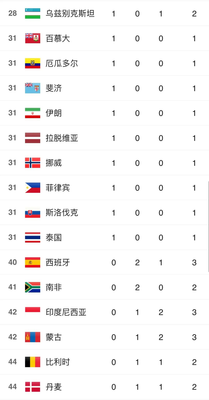 东京奥运会奖牌榜