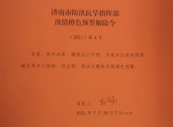 济南解除汛情橙色预警