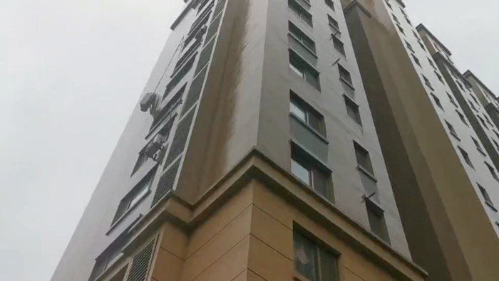 7月29日上午,受台风“烟花”影响,青岛市遭遇了狂风及强降水天气,位于黄岛区珠海街道阳光里小区有一台空调外机掉落,且悬在半空中不断摇摆,情况十分危急。救援人员迅速展开救援行动,经过十几分钟将空调外机安全移入8楼住户家中,未造成人员伤亡。(山东商报·速豹新闻网记者 郑芷南)