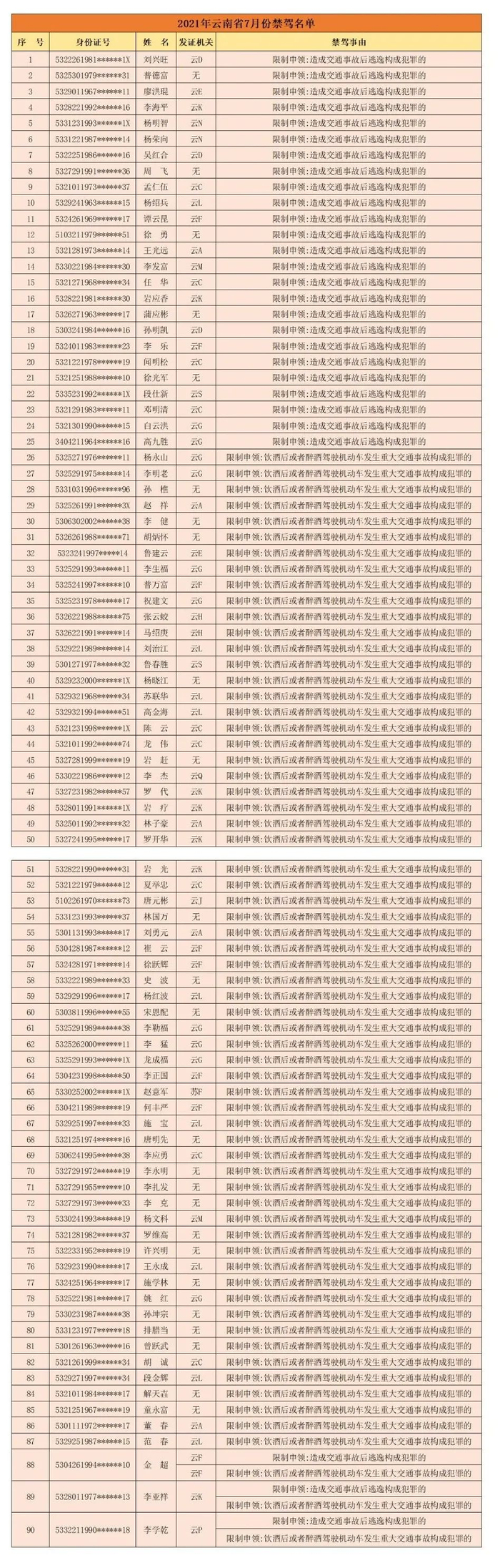 原标题:实名曝光!云南这90人,终生禁驾