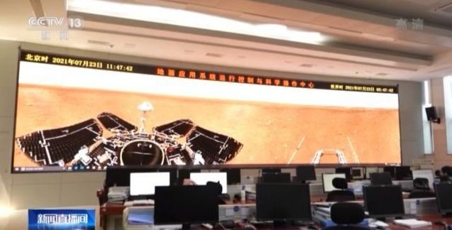 总台央视记者 崔霞:这里是位于北京国家天文台的天问一号任务地面应用系统的运行控制与科学操作中心。祝融号火星车在火星上拍摄的照片,通过数据传输的方式,在70米天线进行接收之后,最终所有的数据需要汇集到这里。