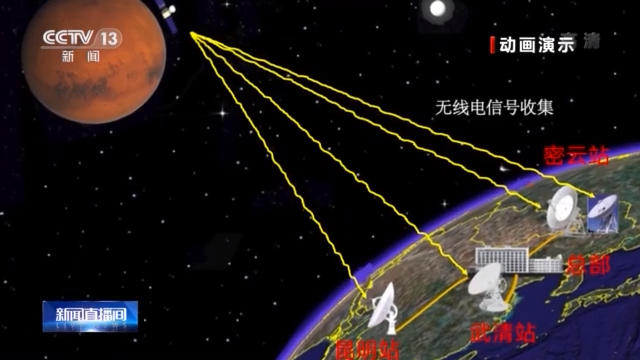 中国首次火星探测任务地面应用系统副总设计师 苏彦:武清地面站是天问一号数据接收的一个最重要的地面站。我们接收到的天问一号探测器发送的电磁波,在地面站进行了解码处理,然后通过专门的光纤线路发送给天文台总部。