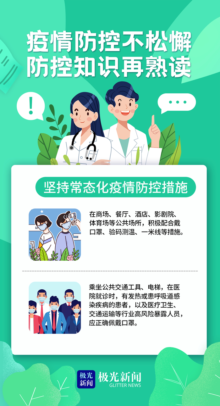 4、新冠肺炎疫情防控不放松,公众要切实增强个人防护意识,科学规范佩戴口罩(尤其是在乘坐公共交通工具和在公共场所活动时)、勤洗手、常通风、保持安全社交距离。