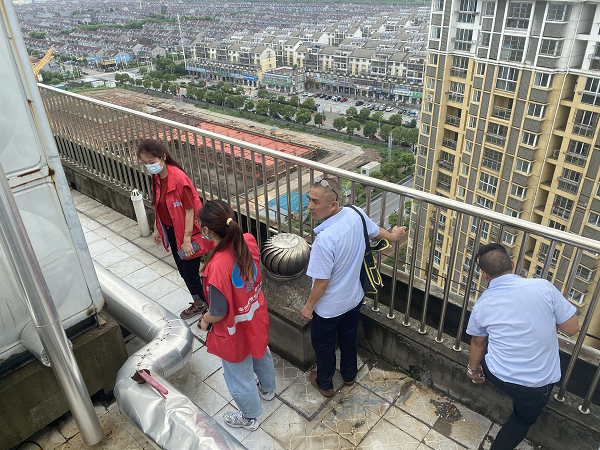 闻“汛”而动,逆行而上。社区坚持“雨前排查、雨中巡查、雨后复查”的原则,暴雨来临前,网格员连同物业管理人员联合成巡防队伍,对小区内、楼顶层排水堵塞、溢满处处进行清理;对低洼路面、地下车库的积水漏水等情况进行巡查,对小区内受灾受损情况进行清点维护。