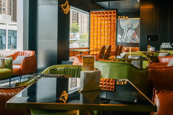 店内共设有两层楼,色彩鲜艳的软沙发,炫彩的霓虹射灯,就连墙上的个性涂鸦都是出自老板的妙笔,仿佛就像个艺术展览~白天里在这氛围下一边享受着餐食,享受着艺术的熏陶,别有一番风味。