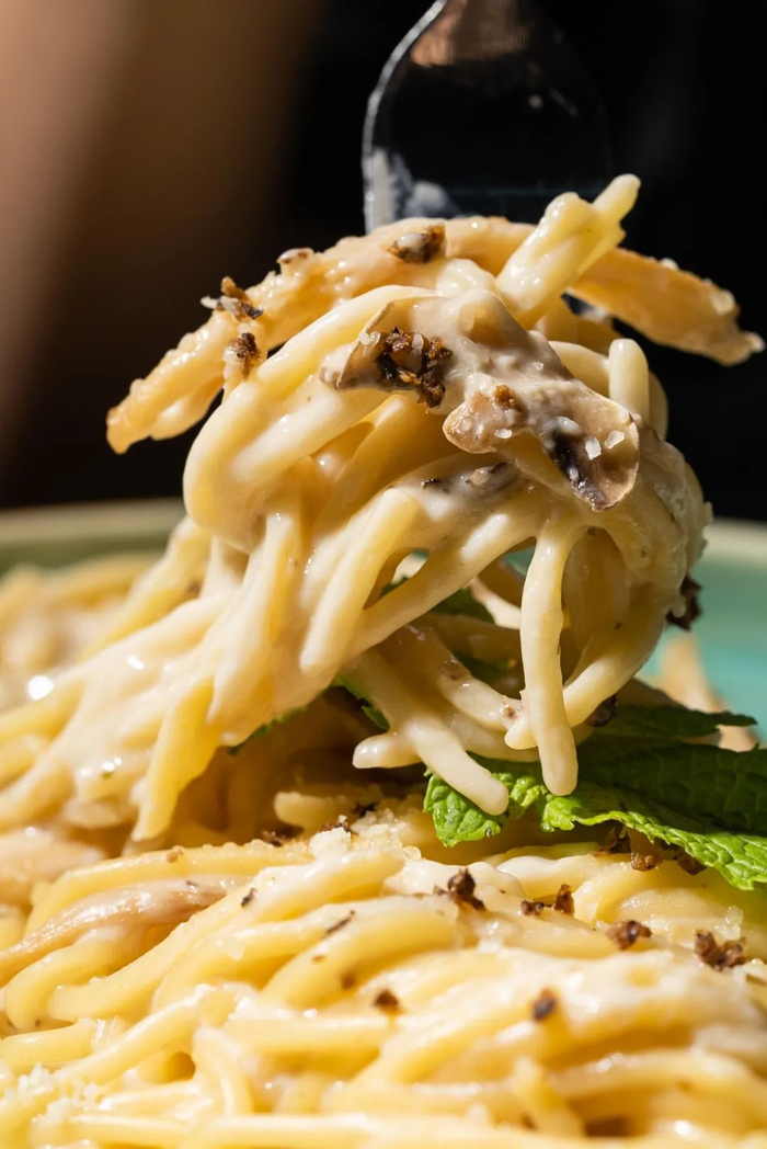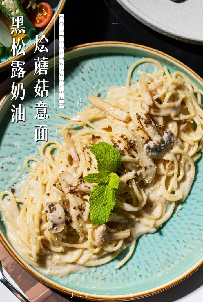 圈粉无数的黑松露奶油烩蘑菇意面,听厨师长说店里的奶油酱料是都是秘制特调的,拥有磨碎的黑松露和杂菇菌类加持,怪不得味道不是一般的鲜美!