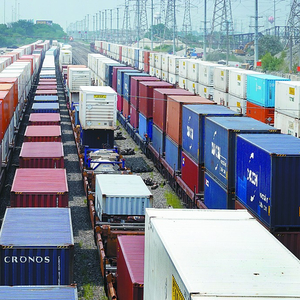 当地时间28日,大批集装箱堆在美国伊利诺伊州芝加哥市一个铁路堆场,造成当地商品供应进一步紧张。