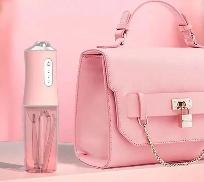 敏煌冲牙器携带非常方便,把喷头一拔,放进水箱里,整体就像一个杯子,放在包包里干净卫生又不占空间,不管是带到公司、外出旅行,每天都能给牙齿洗白白!