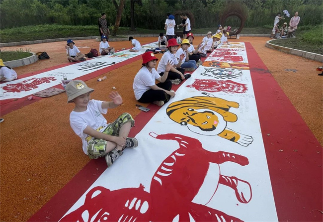 “百米画卷千虎图”——国际青少年绘画展现场。