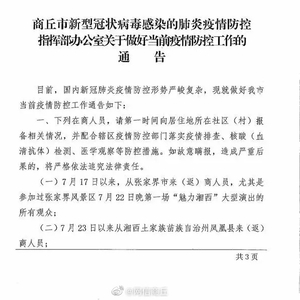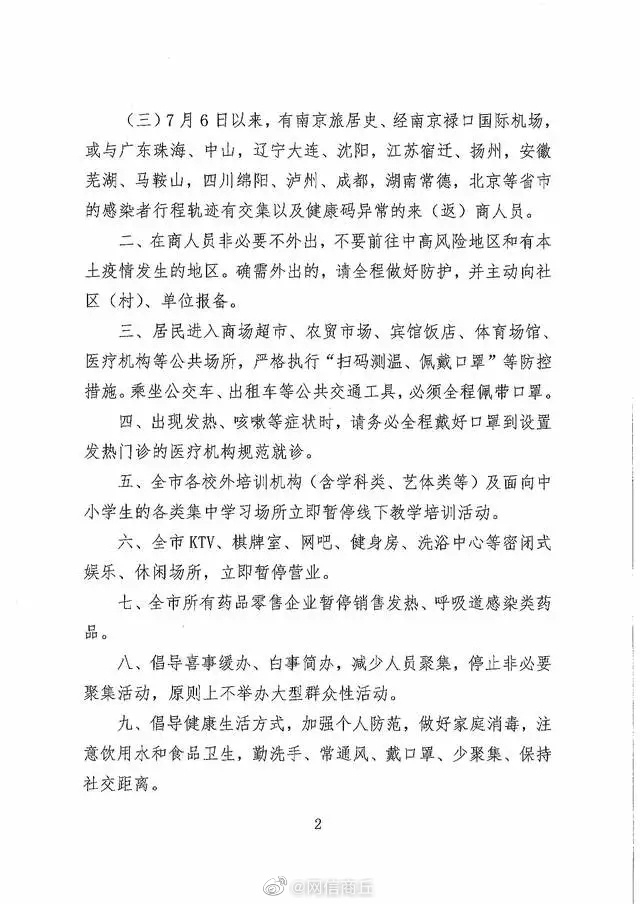 中新网8月1日电 据河南省商丘市互联网信息办公室官方微博消息,商丘市新型冠状病毒感染的肺炎疫情防控指挥部办公室关于做好当前疫情防控工作的通告刊发,其中要求:全市KTV、棋牌室等密闭式娱乐、休闲场所,立即暂停营业。