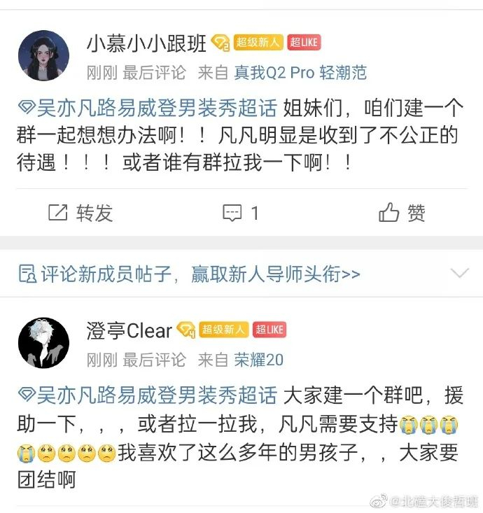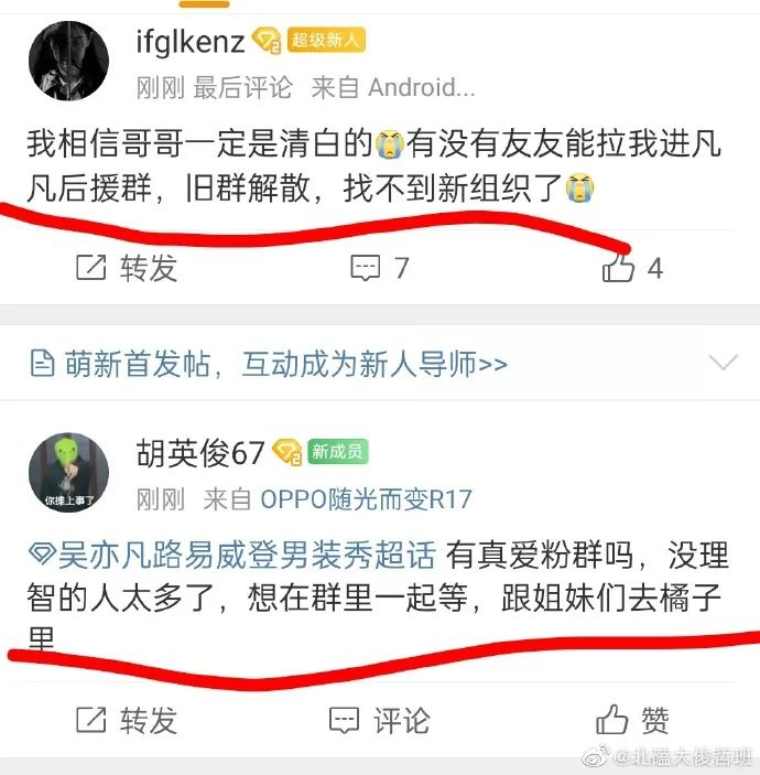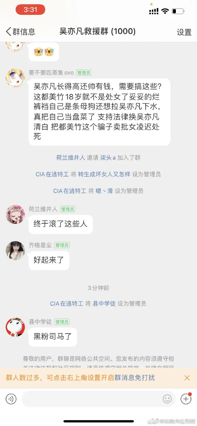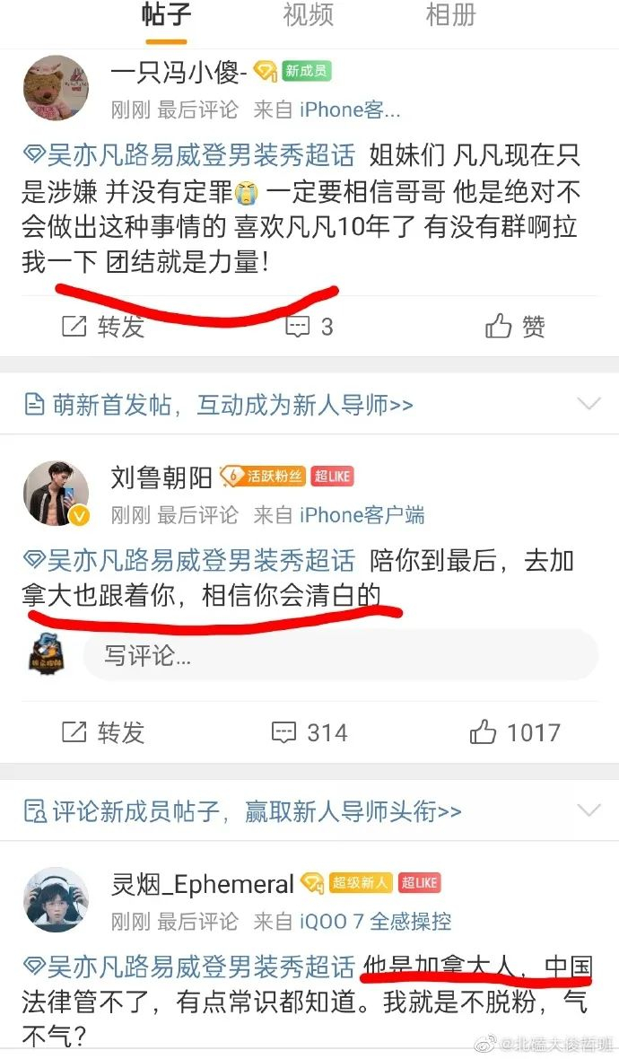 如今,吴亦凡被刑拘事发后,此前的相关超话已被各种平台封禁,然而其粉丝不断开新超话,建群商讨怎么救吴亦凡,准备“考狱警解救吴亦凡”,违法、法盲言论比比皆是——