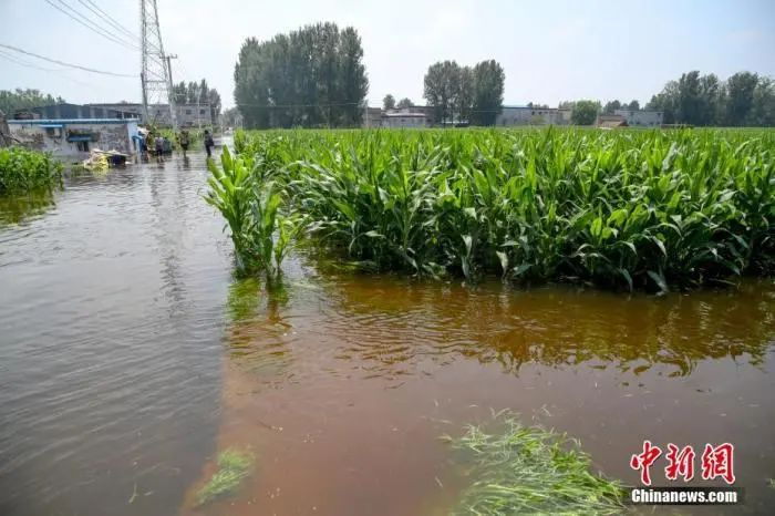 7月25日,河南浚县小河镇西王渡村,大片玉米地浸泡在水中。中新社记者张畅 摄