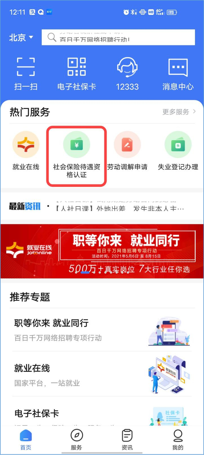 (3)“掌上12333”APP(热门服务—社会保险待遇领取资格认证);