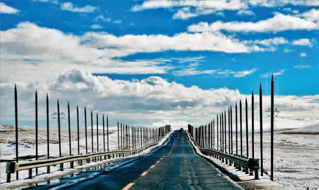 公路两侧用以散热的热棒摄影@季康星球研究所