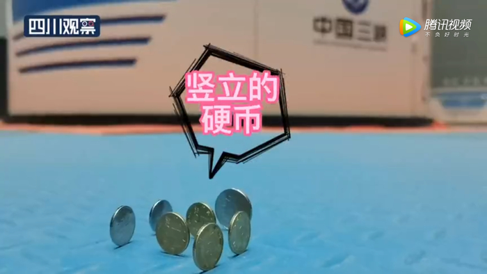 在白鹤滩水电站,只见工程师将硬币立在了一个平台上,平台稳如老狗,硬币屹立不倒。