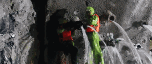 隧道涌水是难题中的难题。短短156米的燕子窝断层,涌出了相当于十五个西湖的水,用了26个月才挖通,工人每日都是“淋浴”作业。