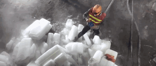 为了降低洞内温度,施工队每天都购买大量冰块降温,保证施工人员的安全和健康。三个施工作业面,每天需要消耗3吨的冰块。