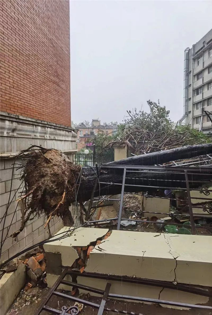 小蔡回忆:“当时下着暴雨,风也非常大,所以路上没有行人,树倒下来的时候没有伤到人,但砸坏了一些东西。”